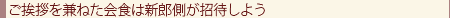これから親戚になる親たちは、挨拶の必要性を感じてるもの。形式的には新郎側がお招きし、日時を設定して、両家で会食という流れがおすすめ。