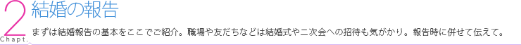 職場に報告後は親族や友だちへ。式に招待したい場合は直接会うか電話で連絡を。うっかり報告し忘れて人づてに知れば「私には連絡が来ない…」と悲しい思いをさせることにも。報告のタイミングには十分気配りを。