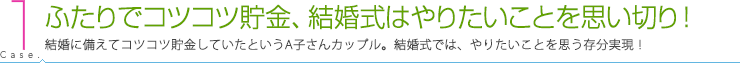 結婚までのおつきあい歴は約3年半。A子さん(31歳)は化粧品会社の経理、彼(30歳)は電機メーカーのシステムエンジニアとして勤務。