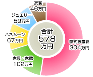 結婚に伴ってかかるお金は約600万円(左表参照)。ほかに両家の顔合わせ、結納や新居への引っ越し費用なども加わる。どんな結婚式をしたいか、どんな生活をしたいかによっても変わるので、大まかに費用を把握したら、ふたりの希望とすり合わせてみて。