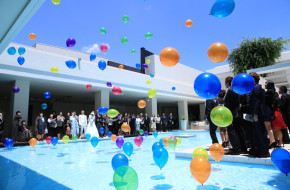 人前式の後は、お天気も味方につけクレアージュで大変人気、キラキラしたラグーンでのバルーンセレモニー!!