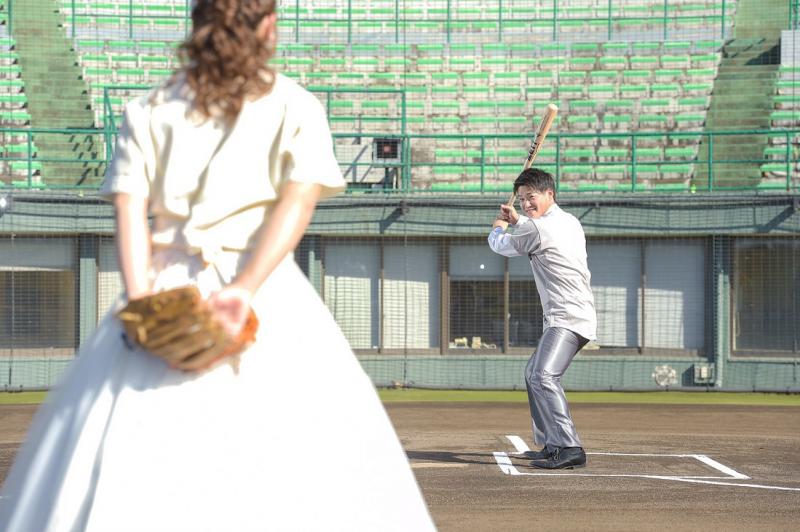 「見るよりも実際にやることがスキ!!」、そんなアクティブなふたりが大好きな”野球”がふたりの結婚式のテーマ。