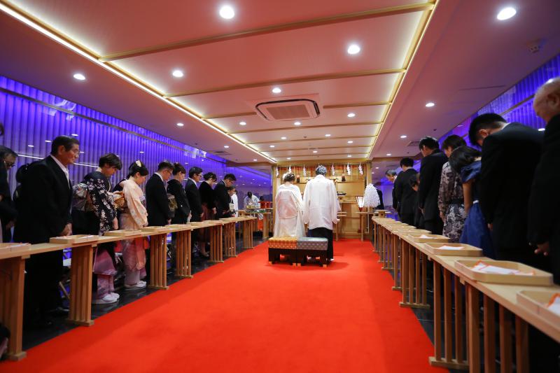 両家の両親と同じ挙式スタイル神前式を選び、挙式後はゲストのお出迎えを