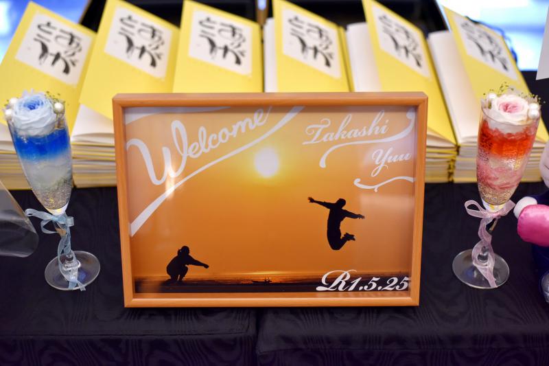 結婚式当日、会場では、そのときに取材された映像や、毎週一緒に行っているバレーボールにちなんだウェルカムグッズがゲストを出迎えました。
