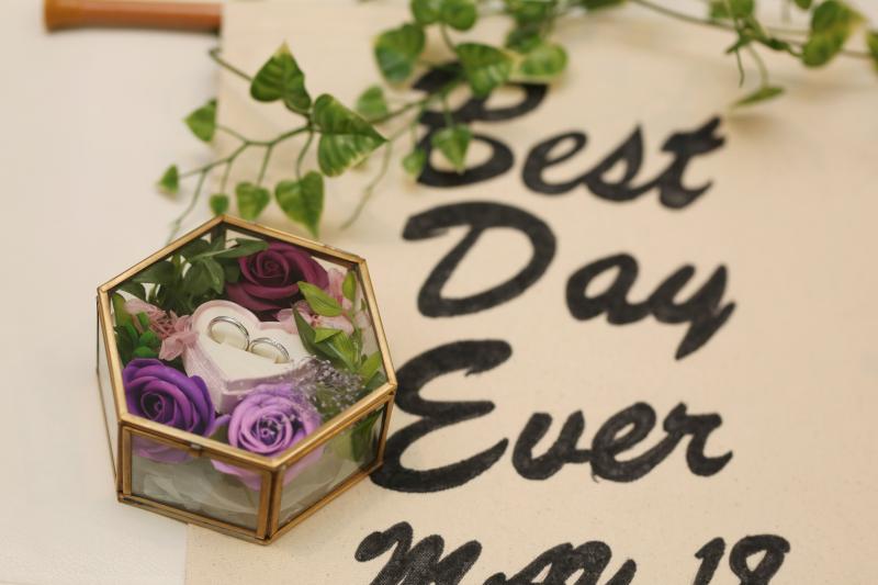 結婚式当日はウェルカムスペースの飾りやお色直しのための退場のエスコートをしてくれました。