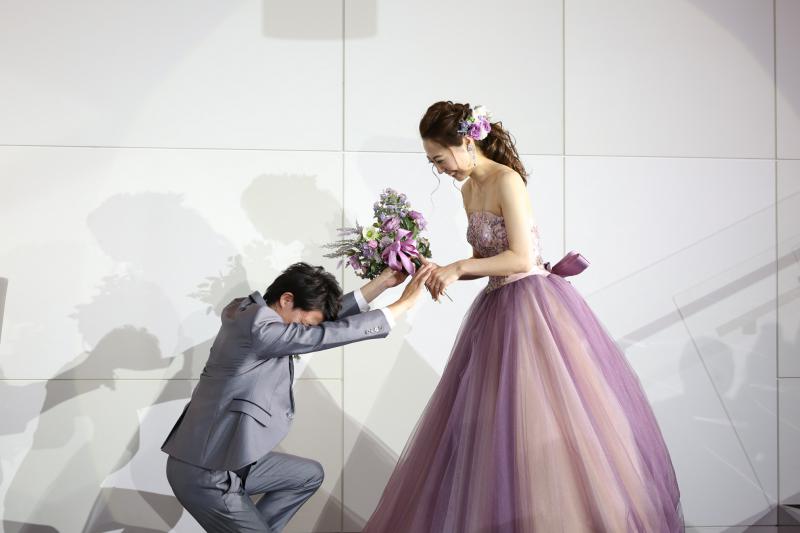 カクテルの色に合わせて結婚式のテーマカラーはパープルで統一し、クラシカルをテーマに結婚式の準備を。