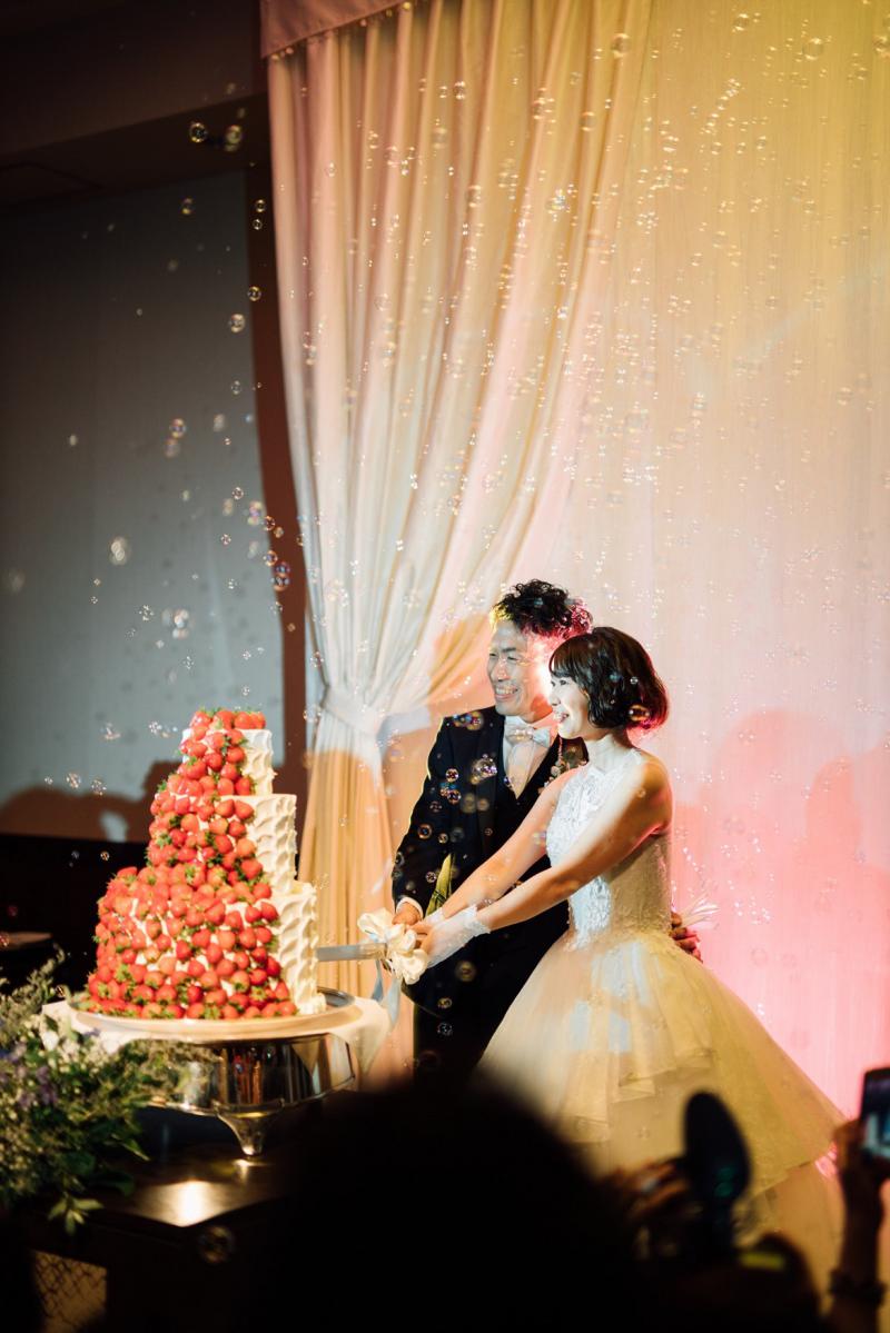 グルメなゲストが多いことから特にこだわった!という料理やイチゴたっぷりの豪華なウェディングケーキもゲストから大好評でした。