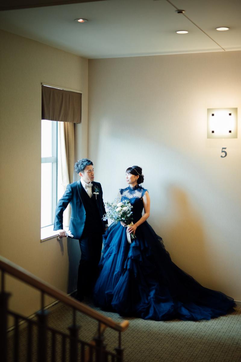 夏の結婚式ということで、カクテルドレスは寒色系で。ゲストからも「かわいいー!」と歓声が。