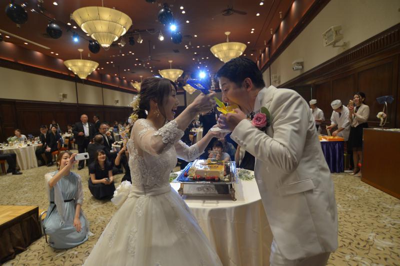 寛子様)披露宴は、「ゲストに楽しんでもらうのが一番!」と思っていましたので、料理と演出でしょうか。料理はデザートビュッフェはもちろん、お寿司や天ぷらのビュッフェを設けて、握りたて・揚げたてを味わってもらいました。演出には、「ユウベルウエディング」初の2つの演出を取り入れてみたんです。これから結婚式を挙げてくださるカップルさまにも喜んでもらえそうな気がして、私が初チャレンジしたような感じなんですが、一つは挙式のアフターセレモニーでの「バブルガン」! 私たち目掛けてシャボン玉を発射してもらいましたが、発射したゲスト本人たちも楽しかったみたいです。それともう一つは、披露宴での「花火」です! 「演出当てクイズ」ということで花火の演出を当ててもらうものでしたが、火花を触っても熱くない最新型で、見た目もそれはキレイで華やかでした♪ それと演出には、実はもう一つのこだわりがありまして……。当日キャプテンを務めてくれている同僚夫婦にお手本バイトをサプライズでお願いすること! この無茶振りが会場にも大ウケでした!