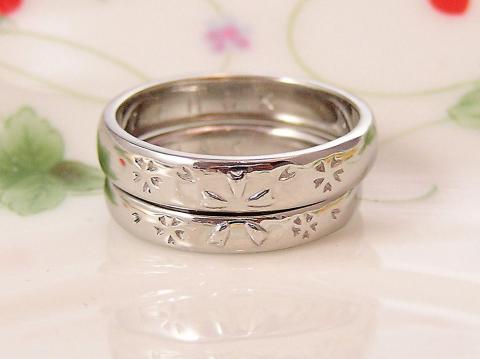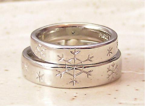 ふたり共通で好きなものが「冬」とのこと。そんな想いを雪の結晶で表現した、世界でひとつだけのリング