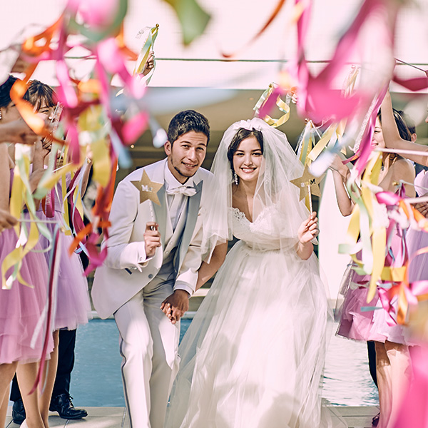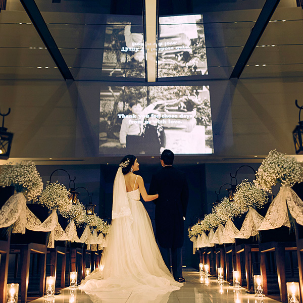 ナイトウエディングならラグーンでの幻想的な光の演出が叶います。