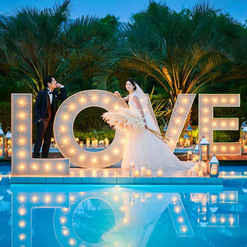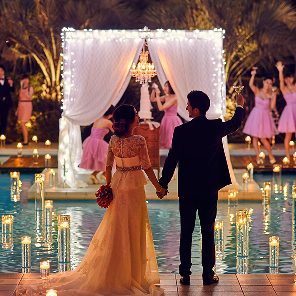 ナイトウェディングならではのリゾート感も楽しめる♪