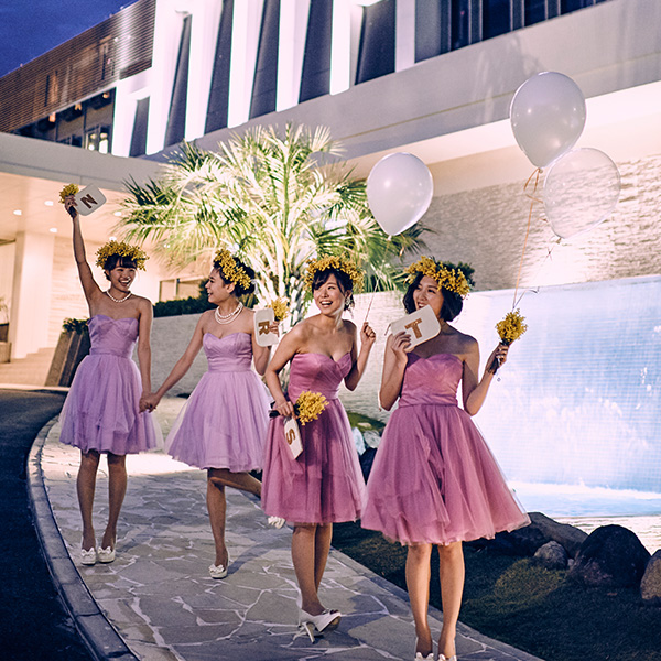 大好きな友人がお揃いの衣裳でブライズメイドに♪お洒落なウェディングも楽しめる。