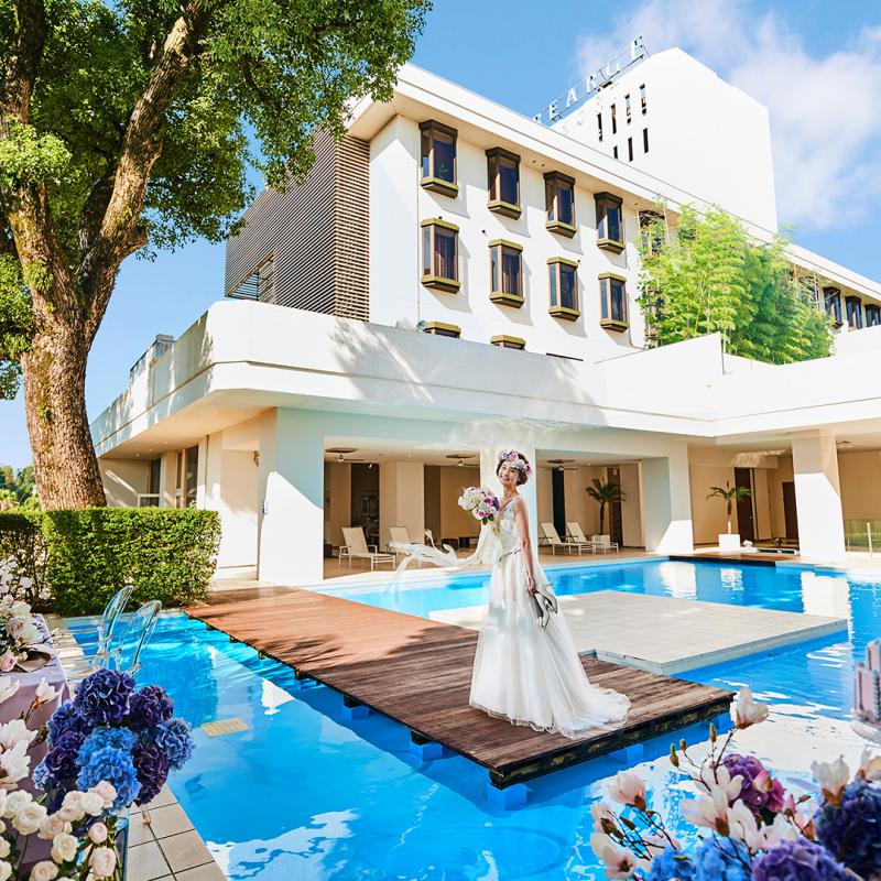 海外のリゾートホテルのような空間で、心に残るオシャレなフォトを。