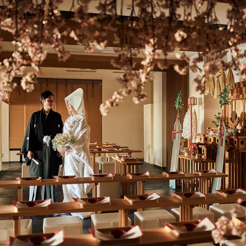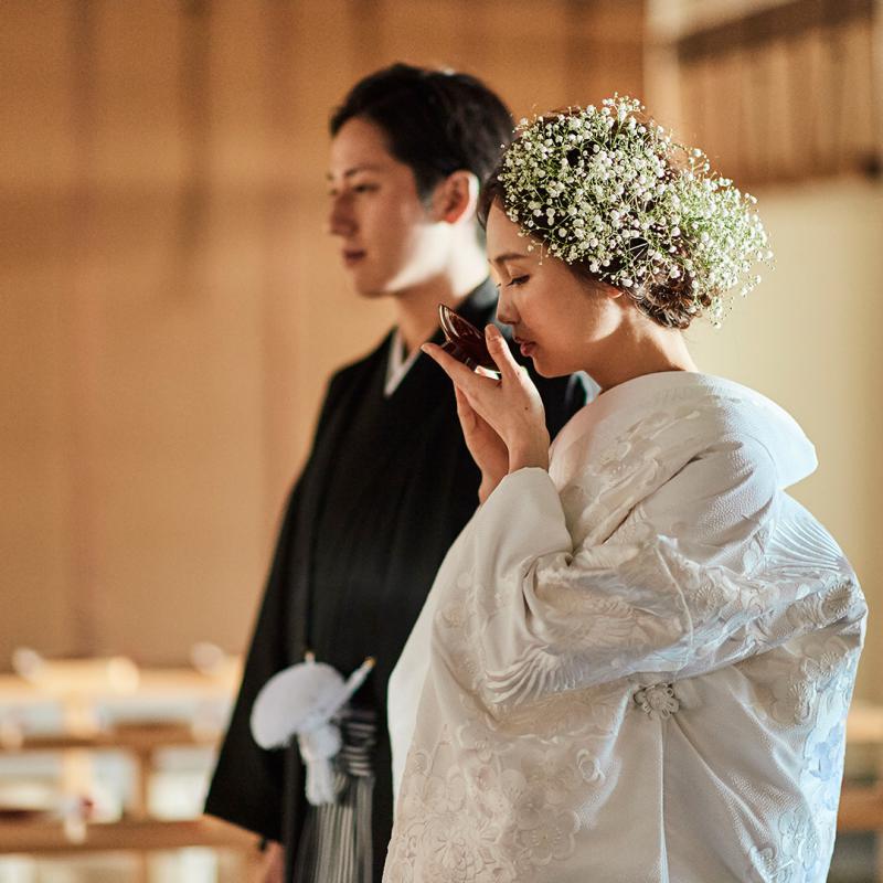 神殿に現れる白無垢姿の花嫁は、ため息がこぼれるような美しさ。