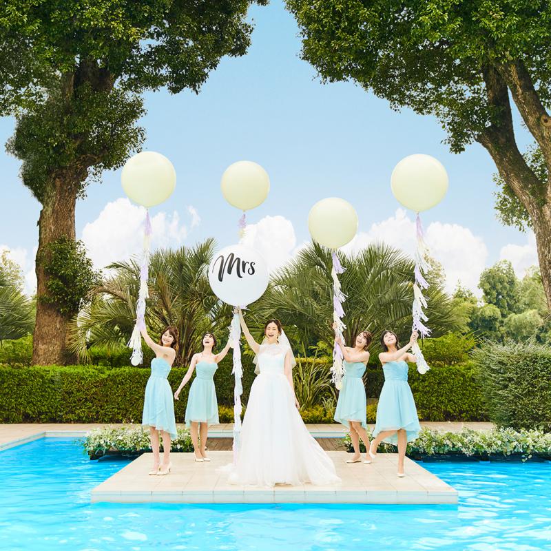 海外リゾートを思わせるラグーンでブライズメイドと記念に。