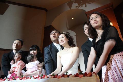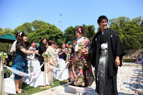 ガーデン人前挙式では千羽以上折った折鶴で祝福のシャワー