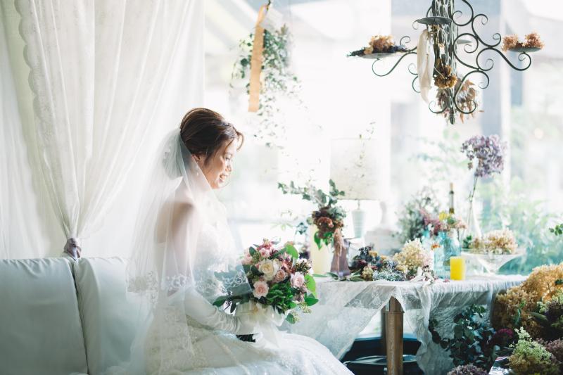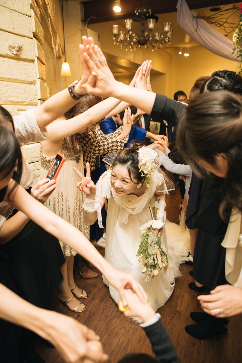 ゲストからの祝福に新婦もにっこり!ナチュラルなドレス姿