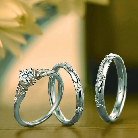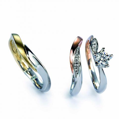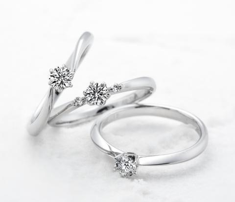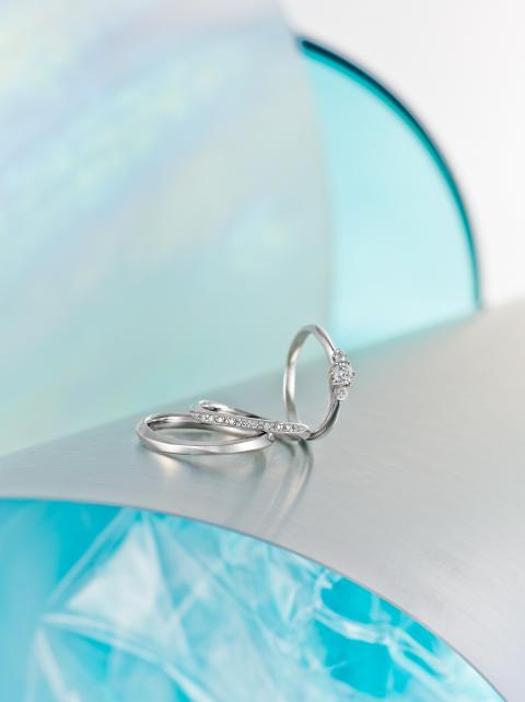 マリッジリングとのセットリングも揃う。エンゲージリングの価格は23万円~。センターダイアモンドのグレードにより価格は変動します。