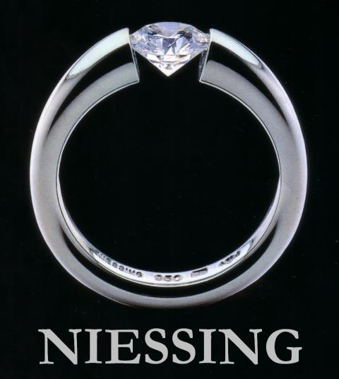 NIESSING(ニーシング)-ザ・ニーシング・リングは無駄な装飾・爪を削ぎ落とし、アームのテンション(張力)だけでダイアモンドを支えています。この芸術的なスタイルはニーシングのオリジナルデザイン。