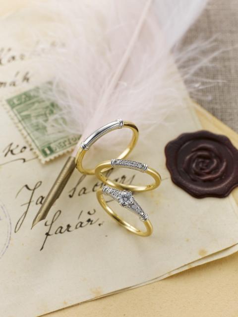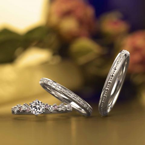 世界各地からやって来た若い芸術家達が出会い芸術の花を咲かせたモンマルトル。『出会い、語り、響き合った』互いを高め合う2人をイメージして。華やかで、なのにどこか懐かしさを感じる、芸術的なマリッジリングです。
